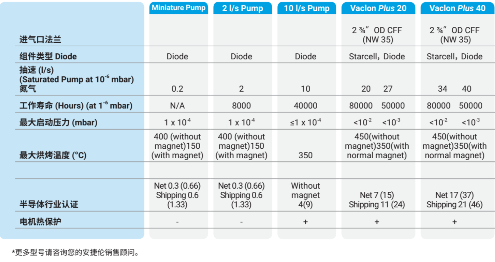 离子泵选型表