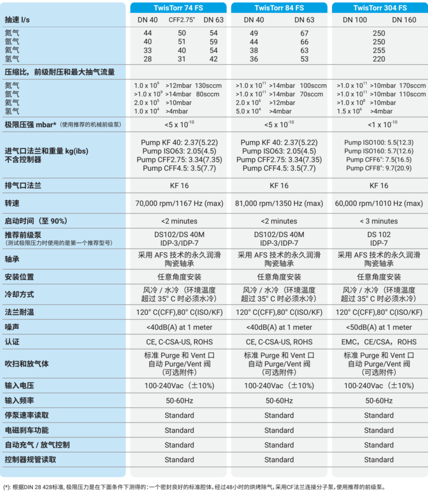 分子泵技术参数