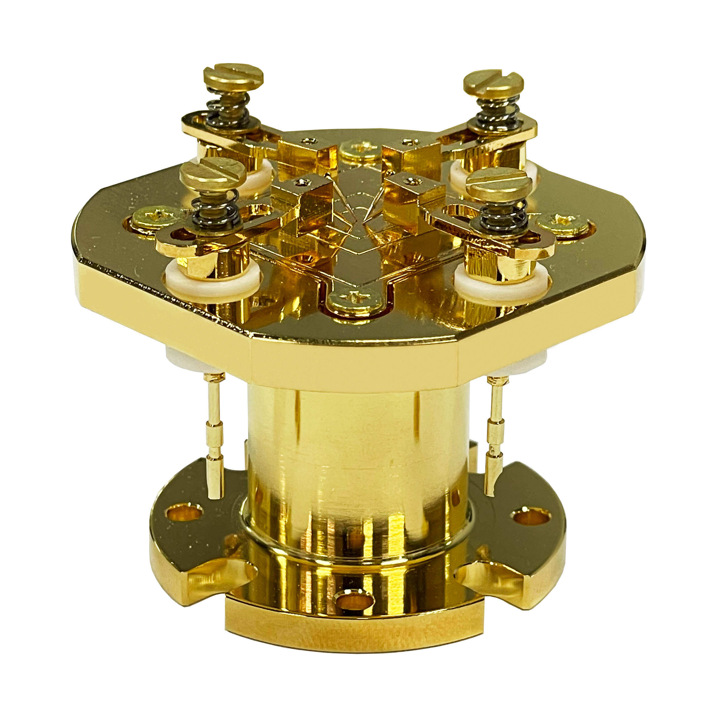 ■ 样品座组成:工字形样品座基座、可拆卸样品承托板、铍铜探针组件(探针数量可根据需要定制,标准配置为4个探针安装在工字形样品座顶部(水平安装)。