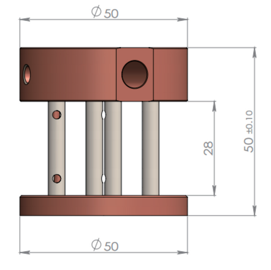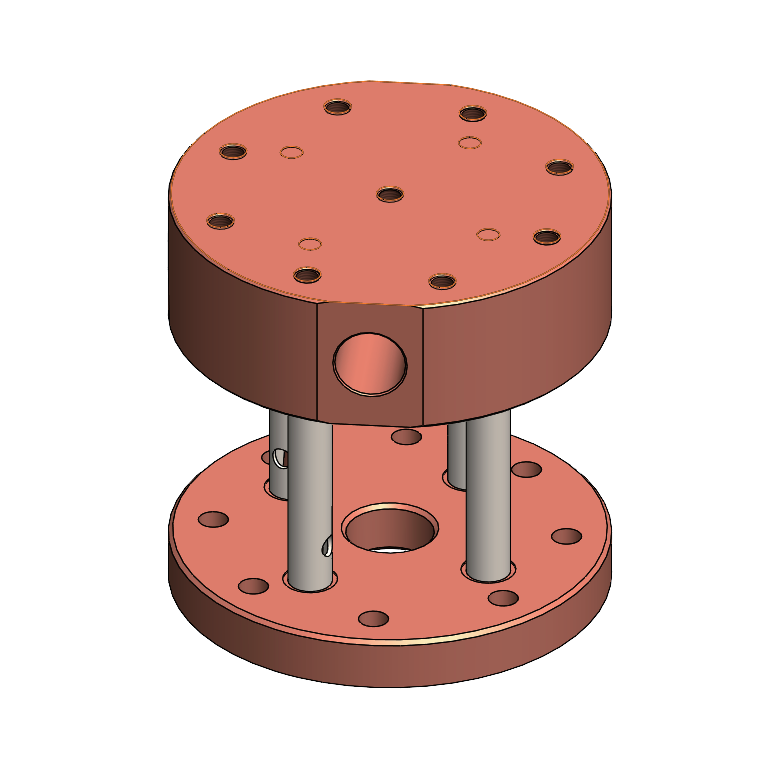 温度高稳定性样品座主要材质为无氧铜,不锈钢做支撑结构,以钎焊工艺连接。使用温度高温不低于800K,低温能低于4K以下。在高温下有良好的绝热能力,大大减弱因为热传导引起的对其他结构的热破坏。低温下也有良好的导热能力,但是会损失一部分冷量。因其绝热能力能降低冷热的波动,样品座温度稳定性很高。
