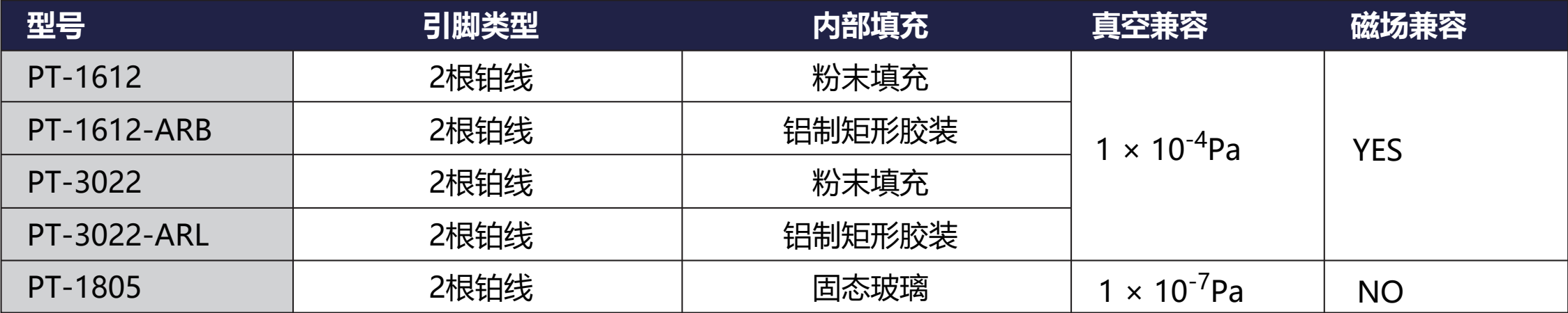 热响应时间:PT-1612 1.75 s @ 77 K, 12.5 s @ 273 K; PT-1805 2.5 s @ 77 K, 20 s @ 273 K