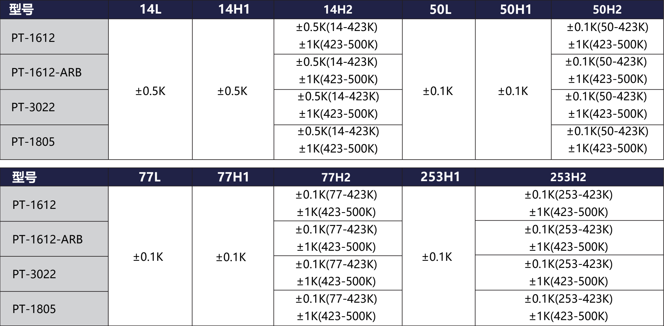 标定精度:L=325K H1=423K H2=500K