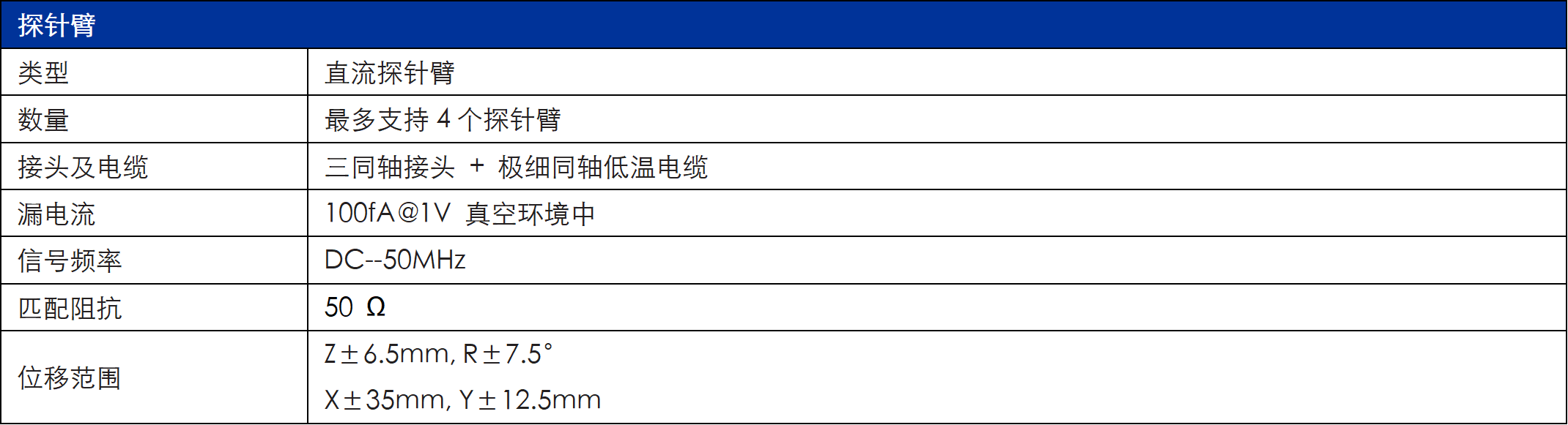 PSM-EM低温探针台是的一款闭循环水平磁场电磁铁探针台,通过增加了+0.6T的水平电磁体加强了标准探针台的性能,能够为半导体芯片的电学参数测试提供一个4.5K-350K高低温真空测试环境,它可以做所有的标准的I,CV,微波和光电实验和水平电磁场测量,研究者可通过它来执行磁输运测量,PSM-EM是低温探针台中矢量磁输运测量的优质探针台可既能实现样品的大磁场,又实现低温真空环境下的芯片、晶圆和器件的非破坏性电学测试。详细的参数和指标请咨询在线客服!