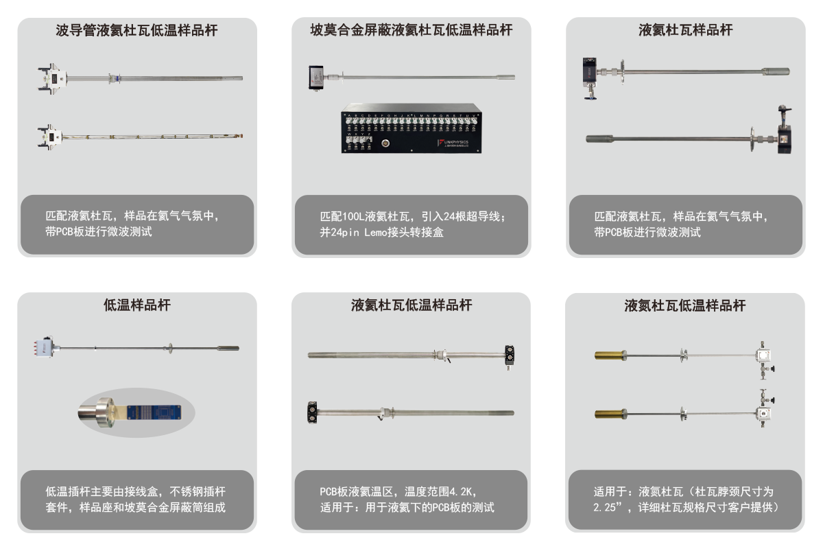 低温样品杆是专为低温试验设计,实现样品的精确变温和控温。提供适配各种液氦、液氮杜瓦的样品杆;各种低温磁场系统:如Oxford低温磁场系统、PPMS等,各种低温恒温器的Top loading 样品杆。