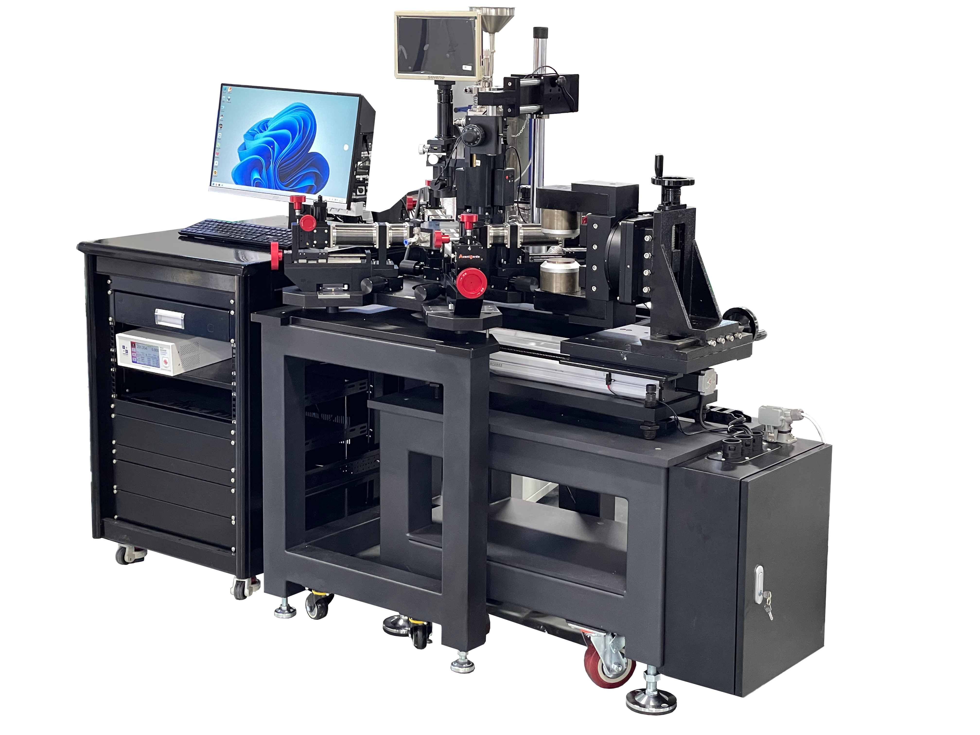 3、样品座可以放置大4英寸的晶圆样品,通过移动样品座下面的滑台,可以实现大X-Y轴±100mm的移动行程,并且样品座本身可以进行四维上的精细调节,使得样品测试和换样更加便捷。