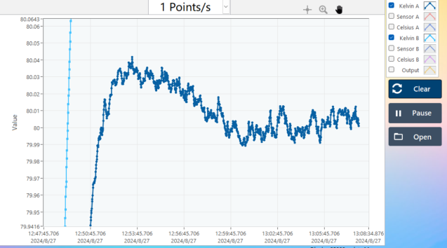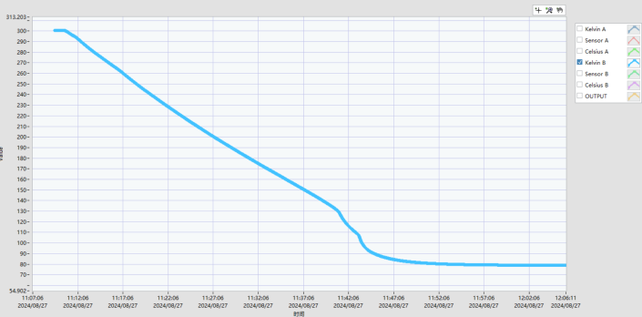 80K温度稳定性(稳定性达到7mK) 降温曲线(从室温到80K的降温时间为50分钟)