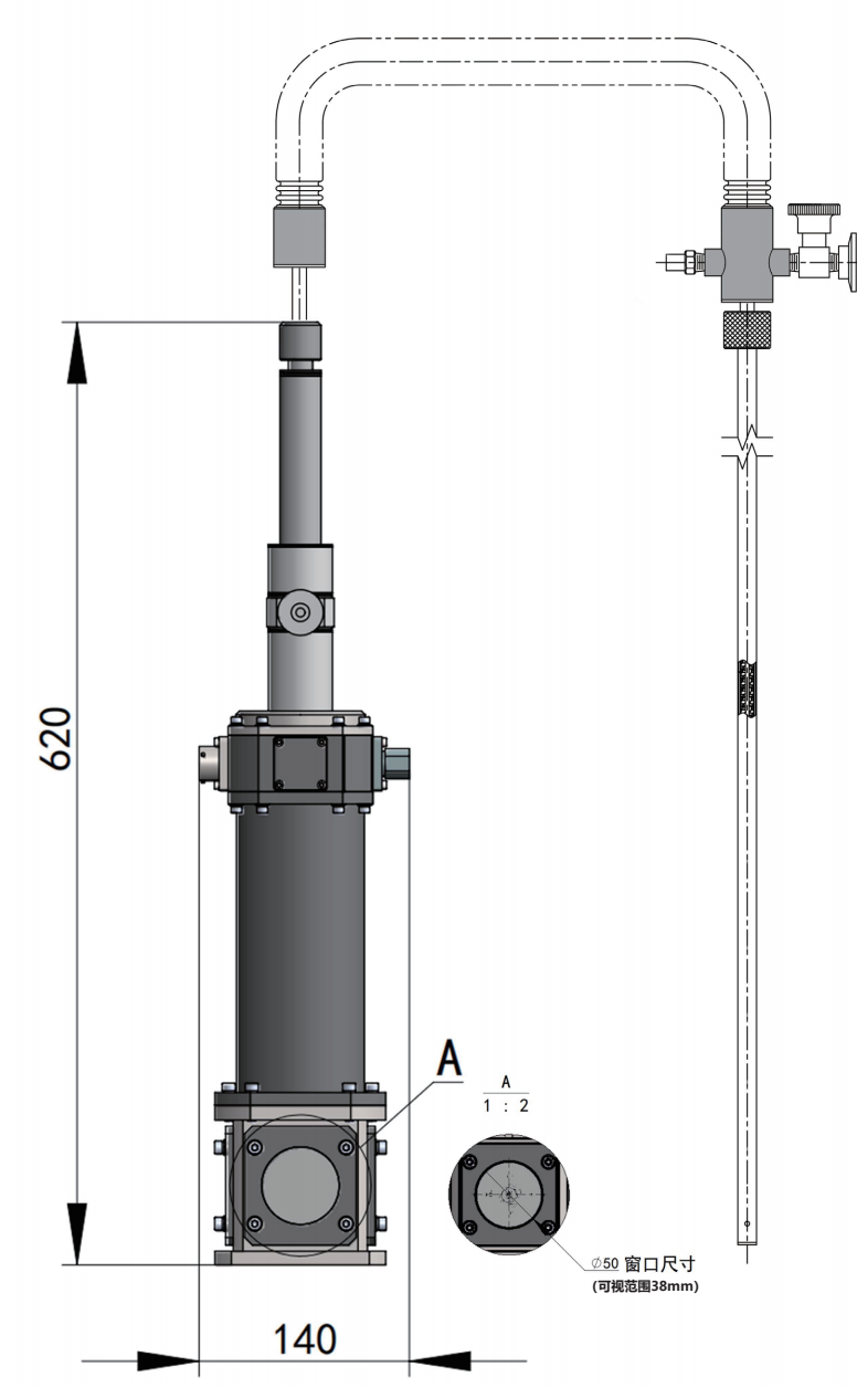 • 一个石英窗口用于打光,从压力包的表面到窗口的外表面距离<10mm